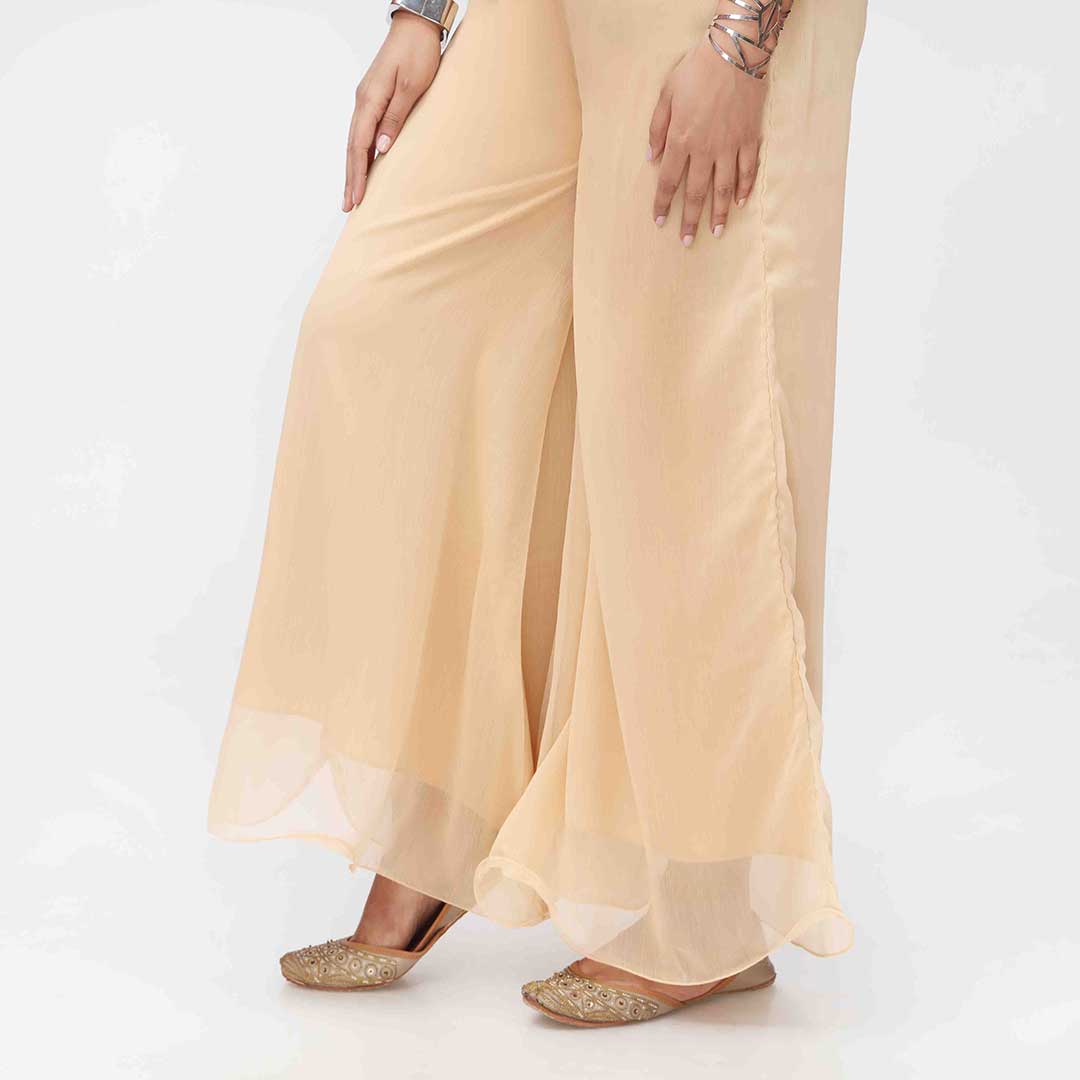 Beige Dyed Chiffon Plazo PW3621