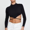 Features: Strap Detail, High Neckline, Cropped, Slim Fit