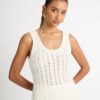 Introducing the Crochet Tank – A classic crochet staple piece to see you into the warmer months ahead. Showcasing a crochet knitted fabric and slim fit cut. Pair with our matching Crochet Maxi Skirt and Sonya Earrings to complete the look.?