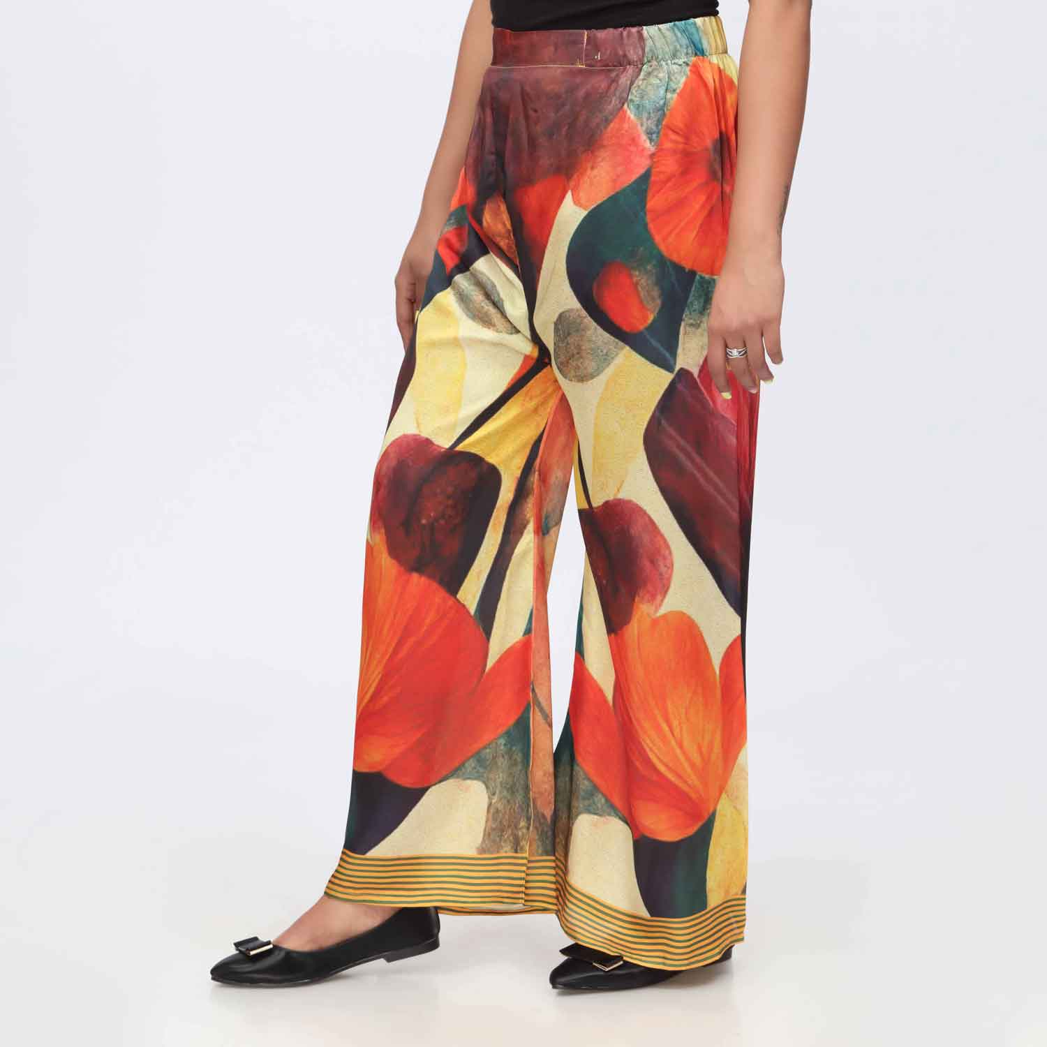 Red Digital Printed Shamoz Silk Trouser PW3648