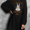 ?Round neck, patchwork bubble sleeves, side pockets and mini-length cut
