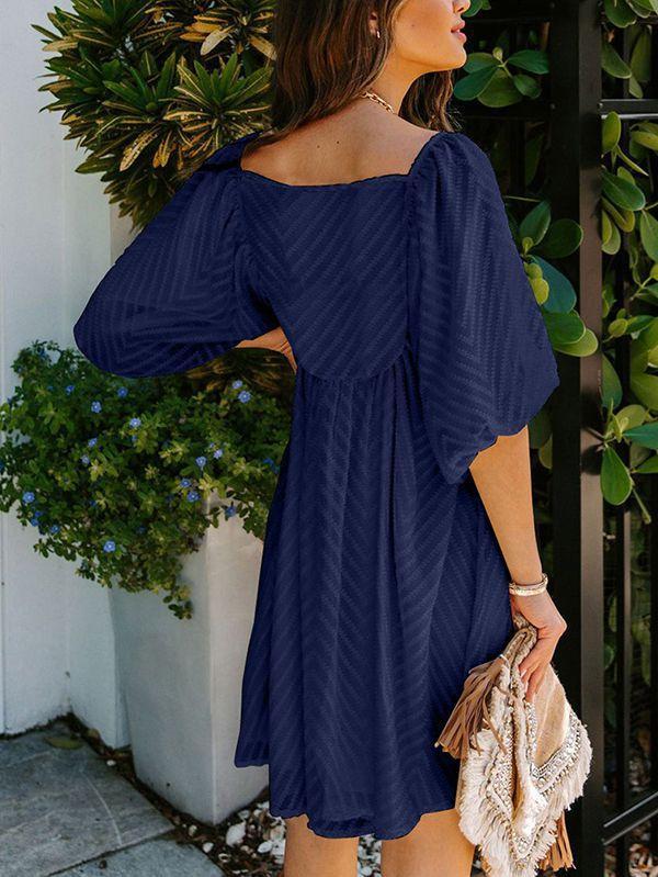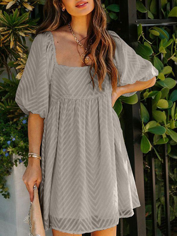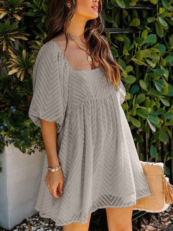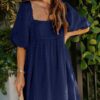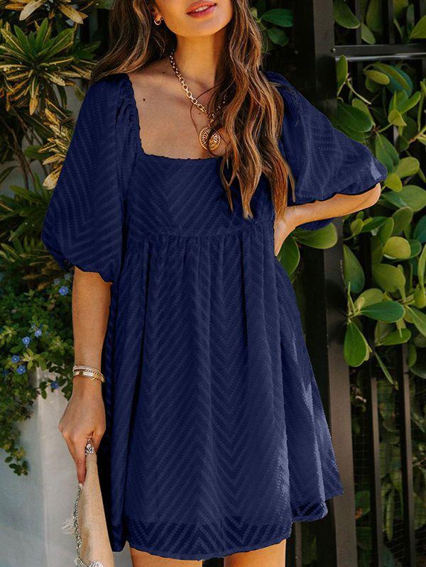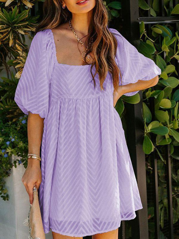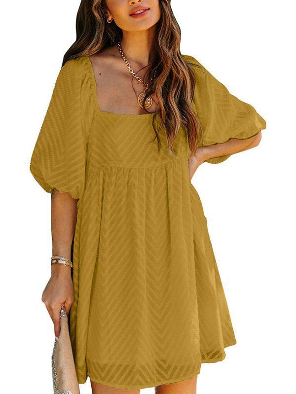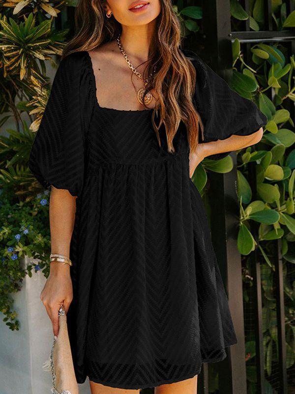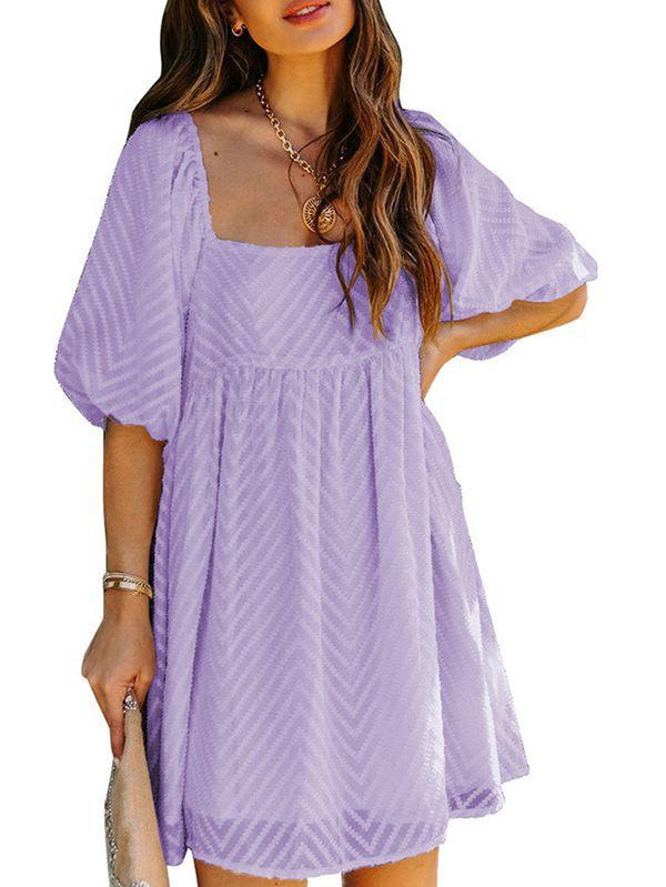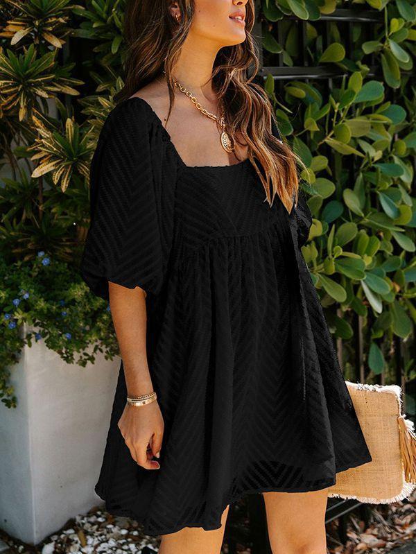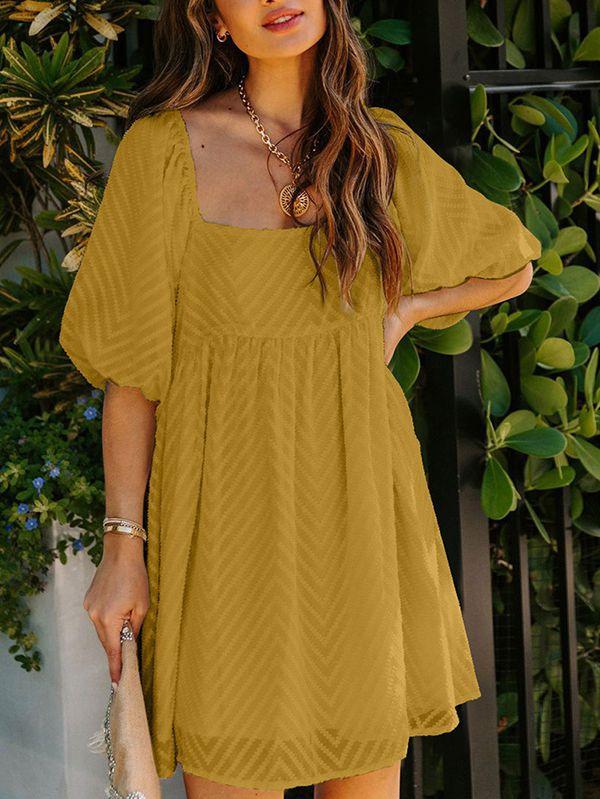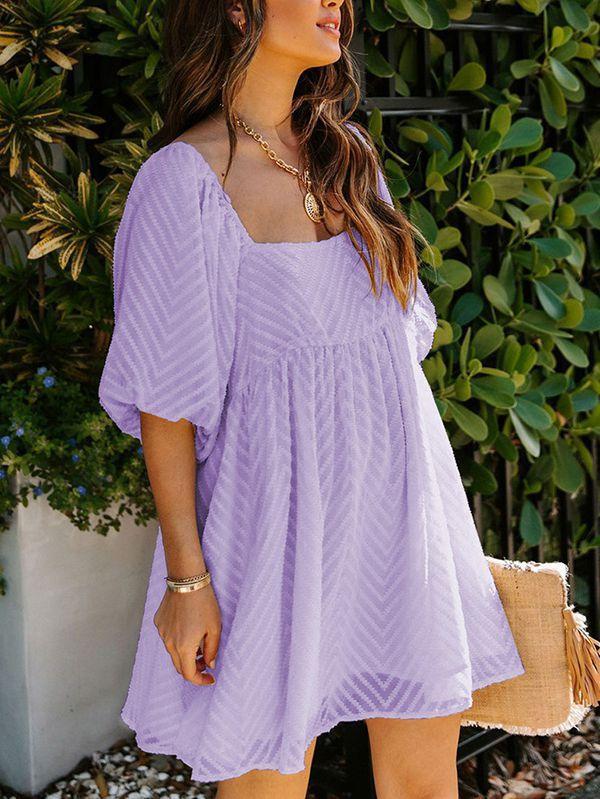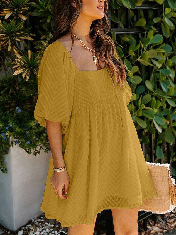 - Solid color square neck chiffon babydoll dress