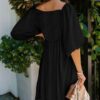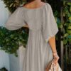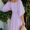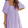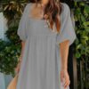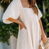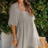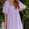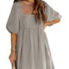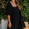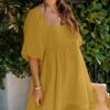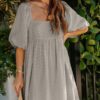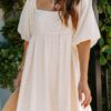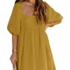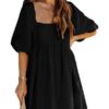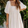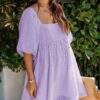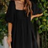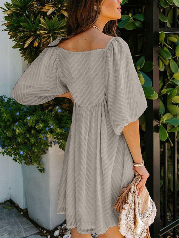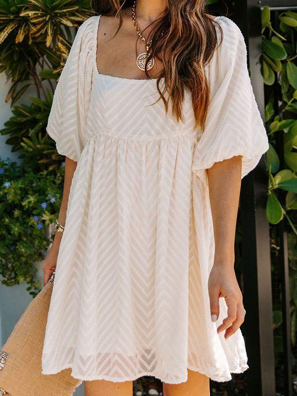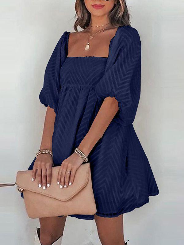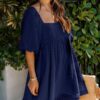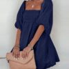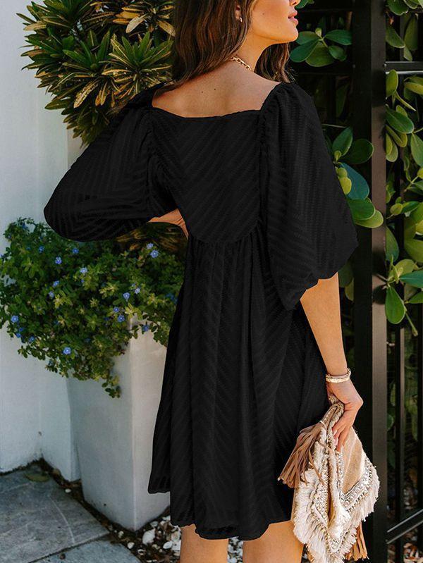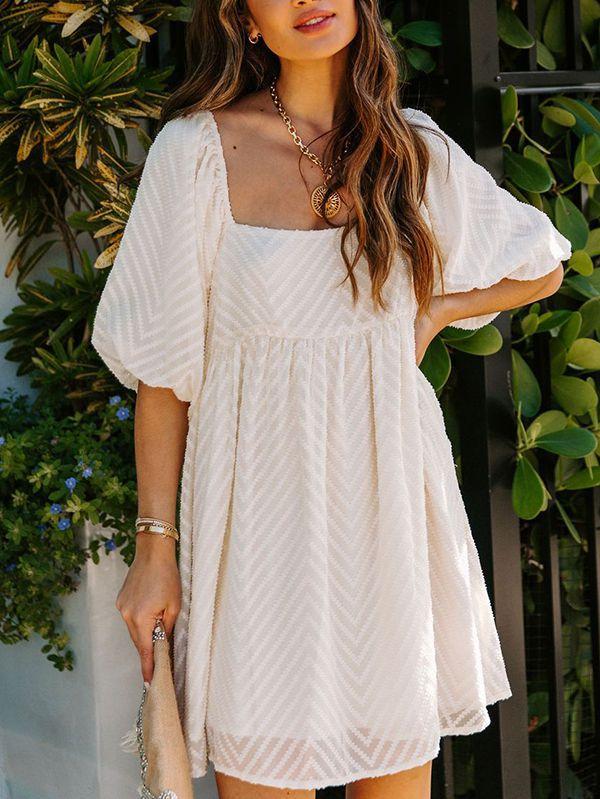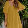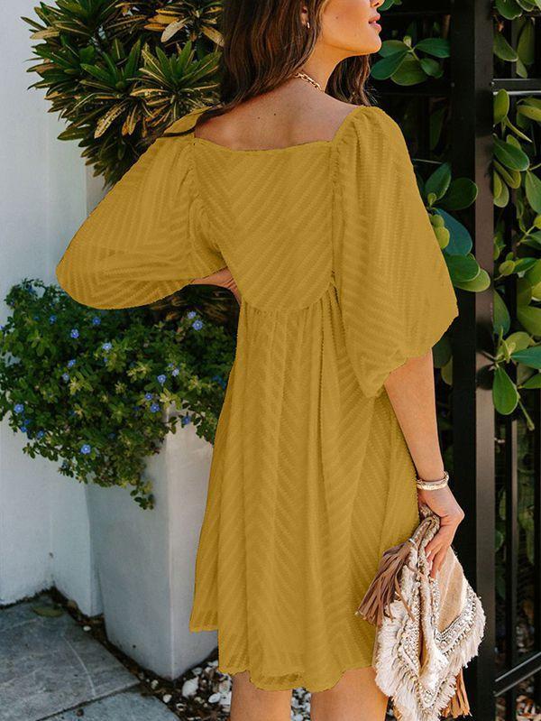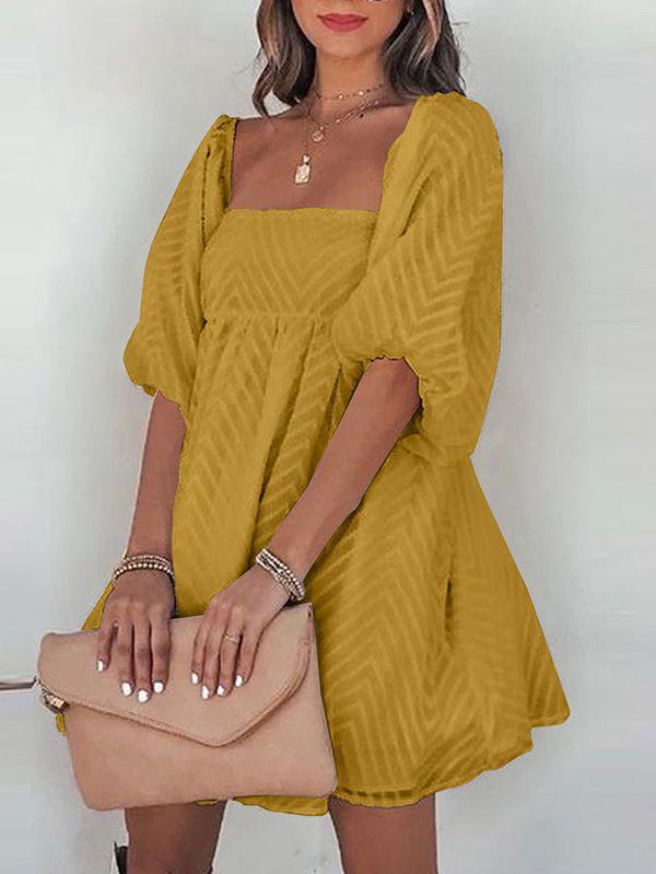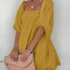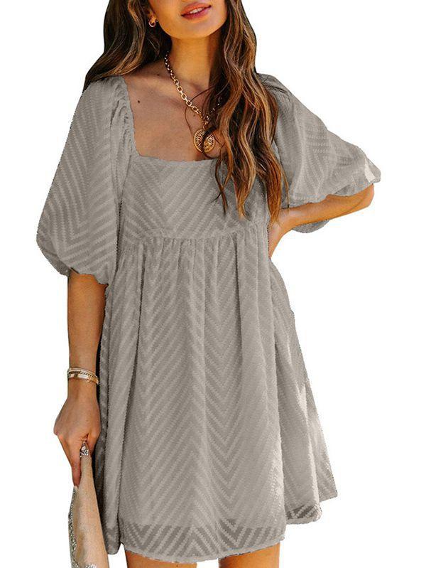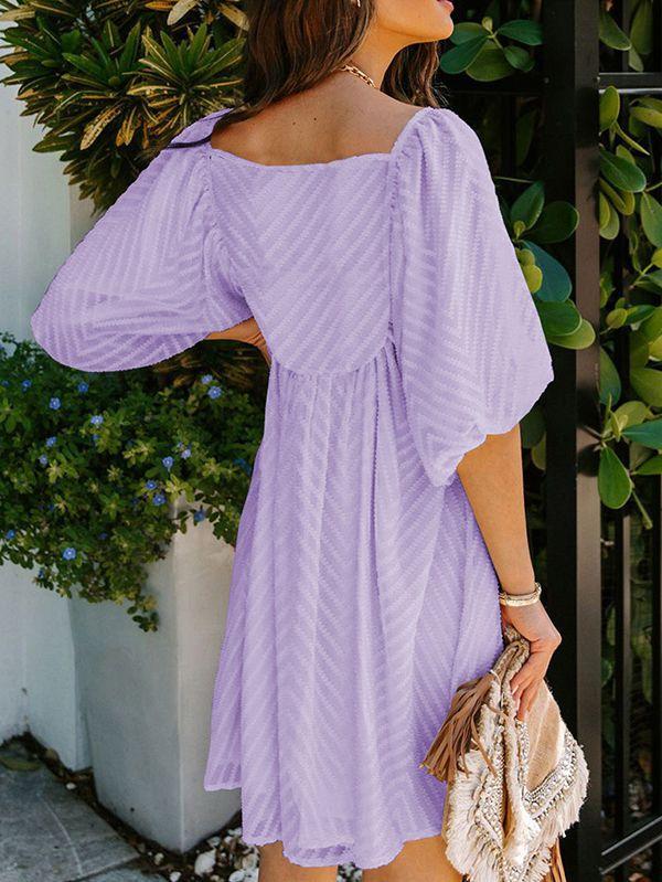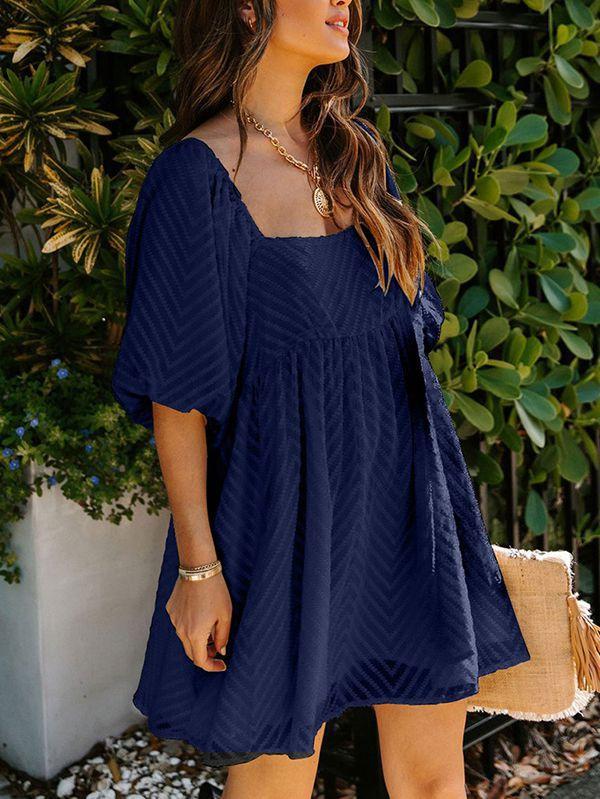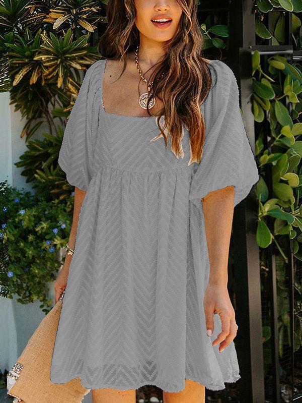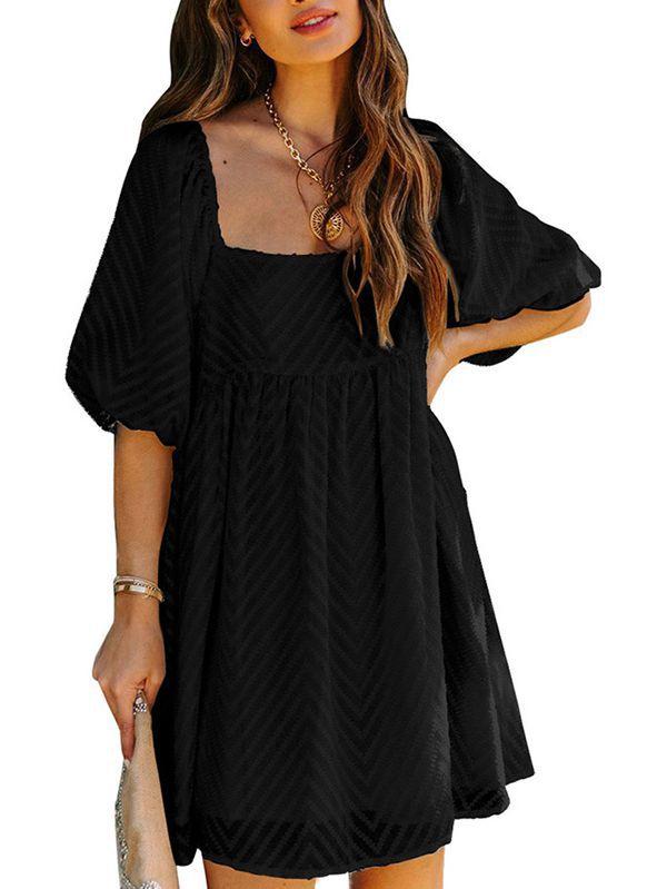 - Solid color square neck chiffon babydoll dress