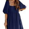 - Solid color square neck chiffon babydoll dress