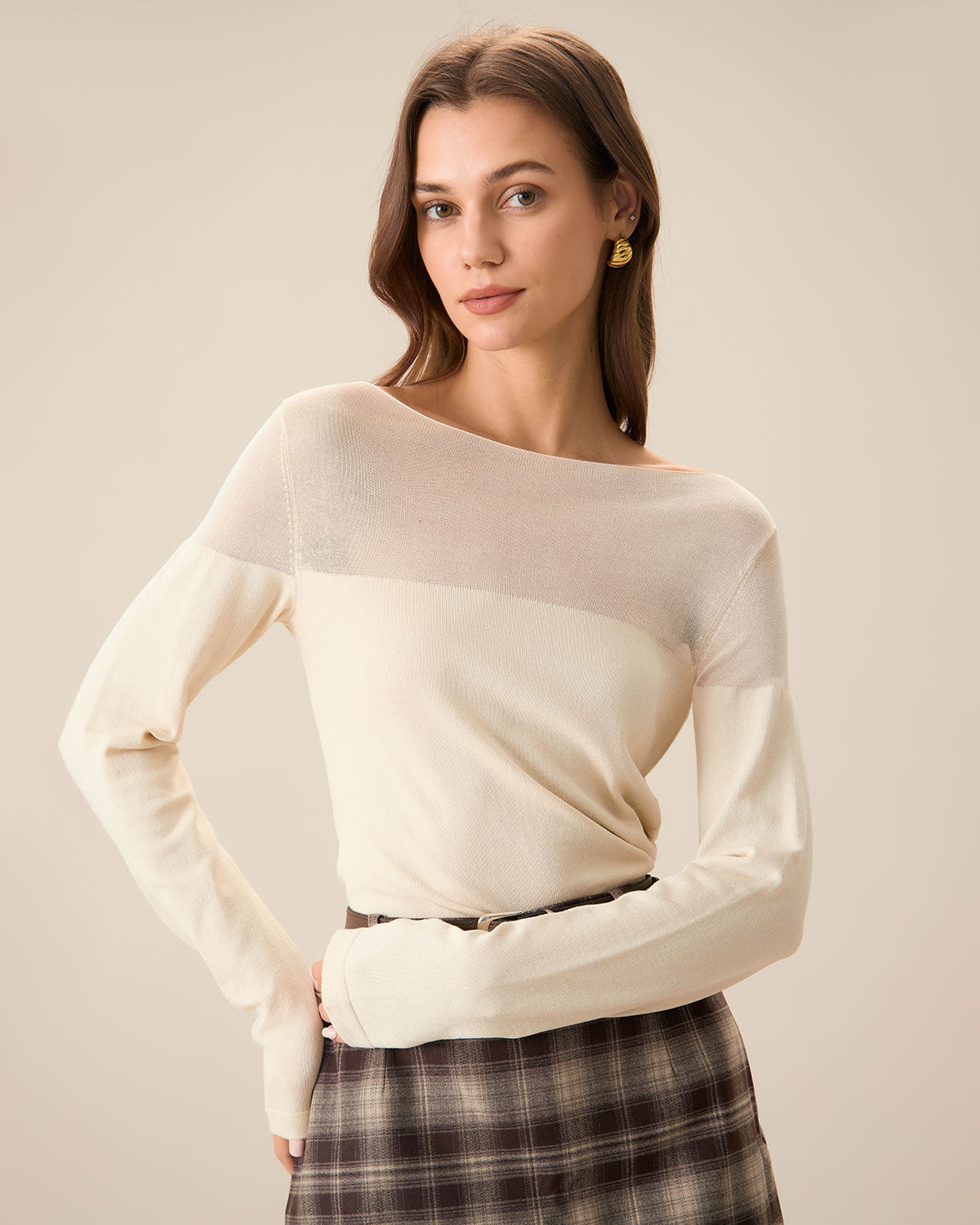 This is a versatile piece that combines classic style with modern comfort. The sheer and spliced design adds vibrancy to this top, while the long sleeves, medium stretch and boat neck details make it perfect for warmer weather. Whether dressed up with a or dressed down with , this top is sure to become a wardrobe staple.