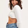 Features: Cut Out Detail, Ribbed Material, Long Sleeves, Cropped Length