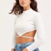 Features: Strap Detail, High Neckline, Cropped, Slim Fit