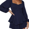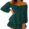 - Women off shoulder chiffon jumpsuit, boho long sleeve shorts romper