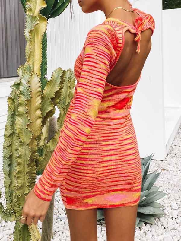 - This y2k knitted dress features long sleeves, tie-back design, backless, above knee length. Sexy backless dress for women